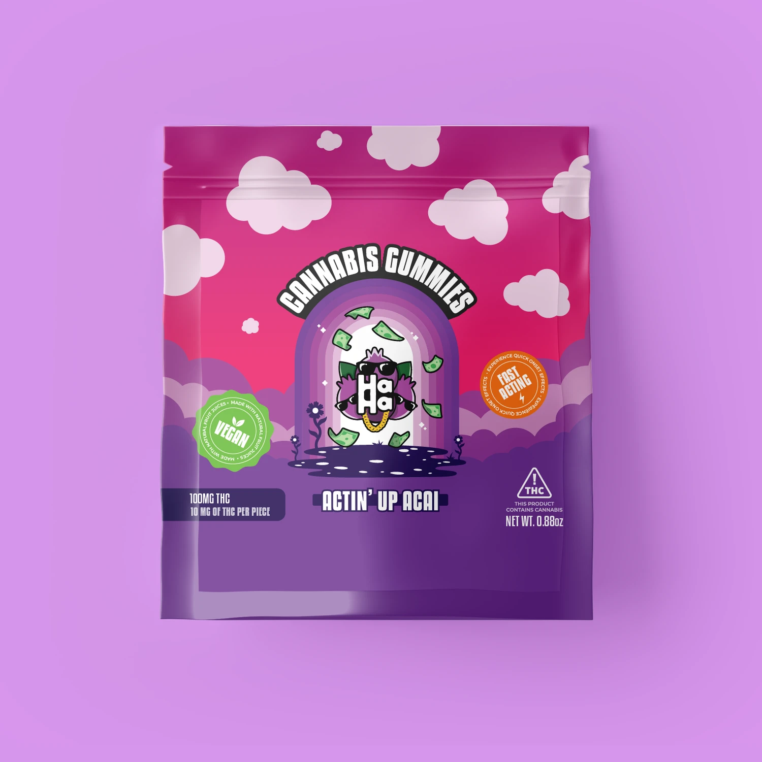 Creating Haha's cannabis-infused edible gummy line was a daunting task, with each fruit flavor featuring its own unique universe. From Mighty Mango's dumbbells to Blue Razz's nighttime blueberry and Strawberry-Lover Lemonade's romantic aesthetic, these gummies promise both a visually captivating and flavor-packed experience, perfectly aligned with Haha's playful brand identity.